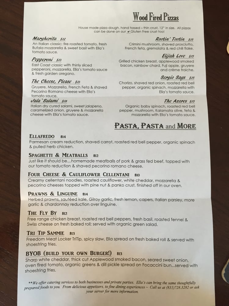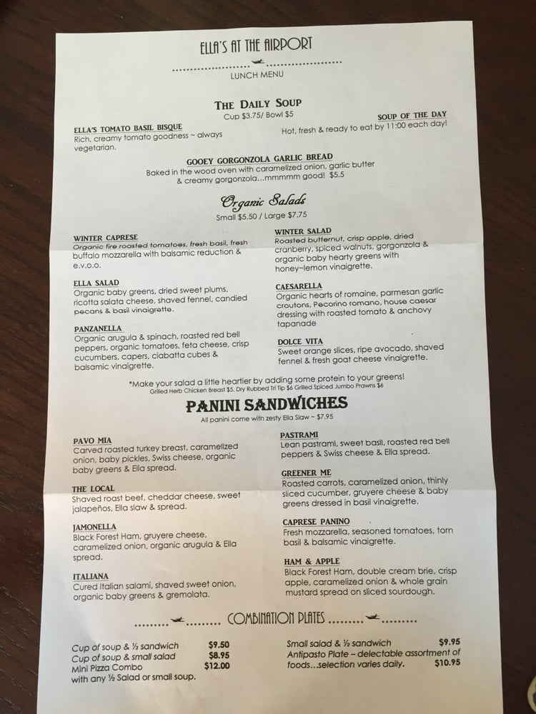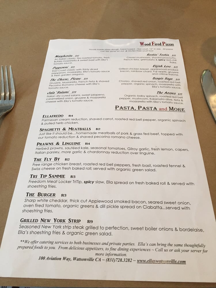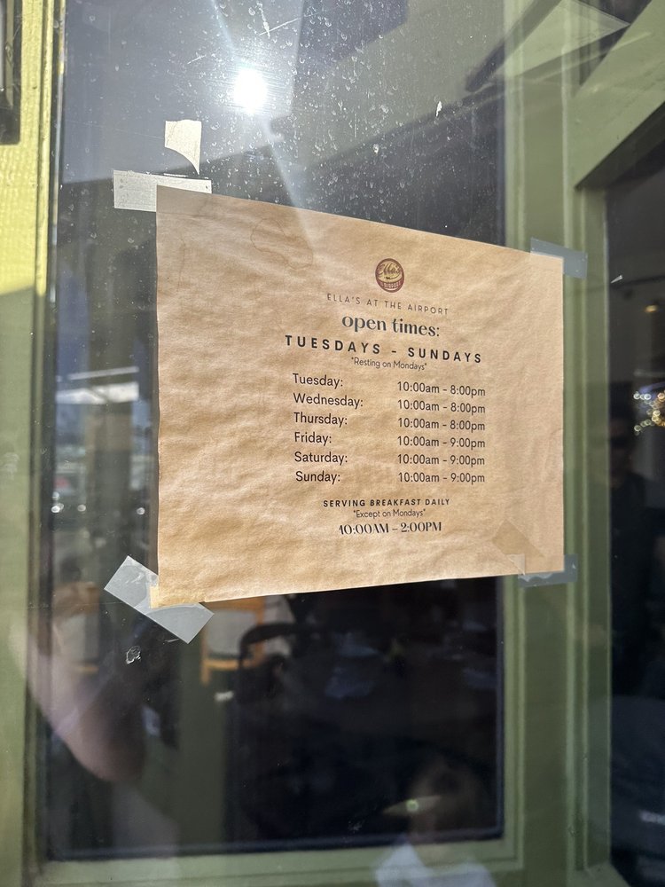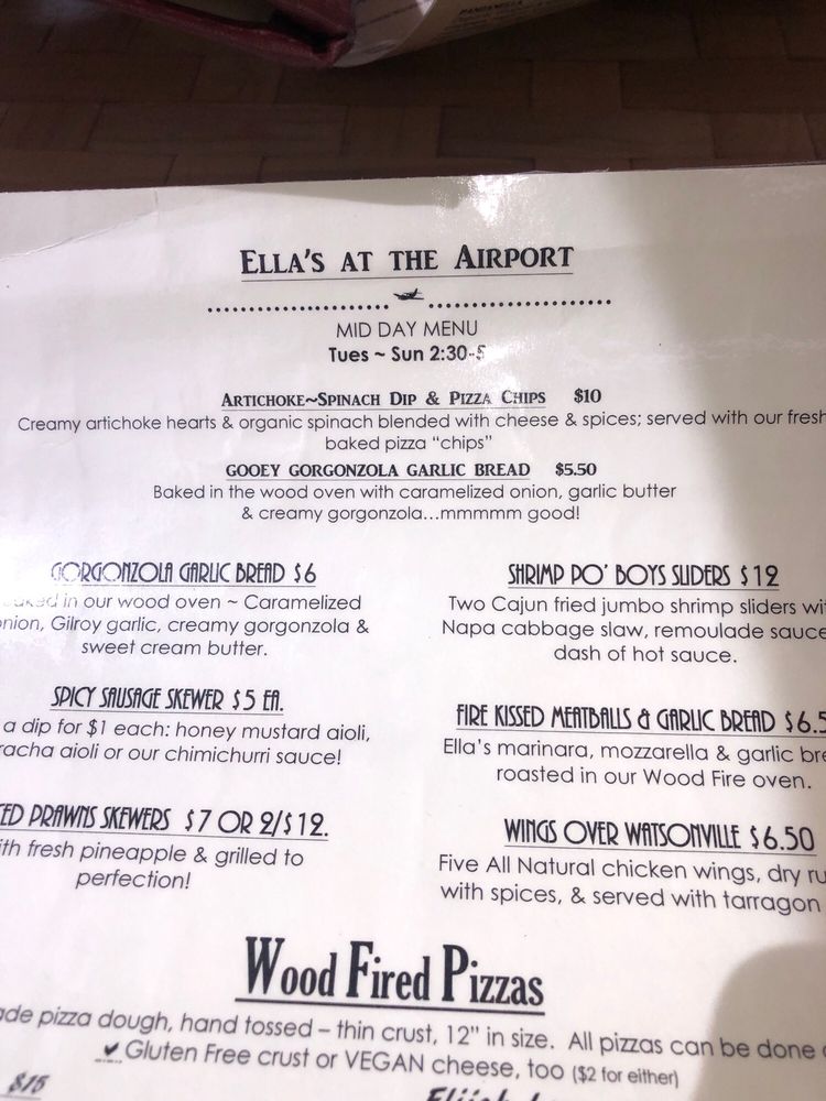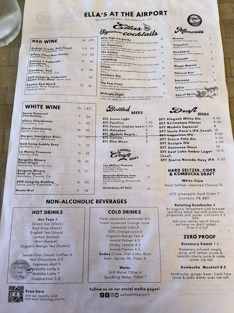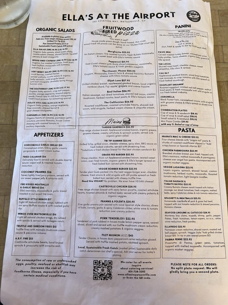 Introducing Ella’s At The Airport, a casual dining spot in Watsonville, CA, offering a range of options from vegan to hearty meat dishes. Known for its airport view and friendly service, Ella’s provides a unique dining experience. Highlights include their Caprese salad, berry bruschetta, and flavorful pepper jelly. Customers rave about the fresh chicken sandwich, Corralitos Bacon brunch, and Watsonville margherita pizza. The ambiance, reminiscent of the 70s, adds to the charm of this family-friendly restaurant. With options for takeout, delivery, and catering, Ella’s At The Airport caters to all dining needs. Don't miss out on their happy hour specials and full bar, making it a perfect spot to unwind over good food and drinks. Experience Ella's At The Airport for a memorable dining experience.